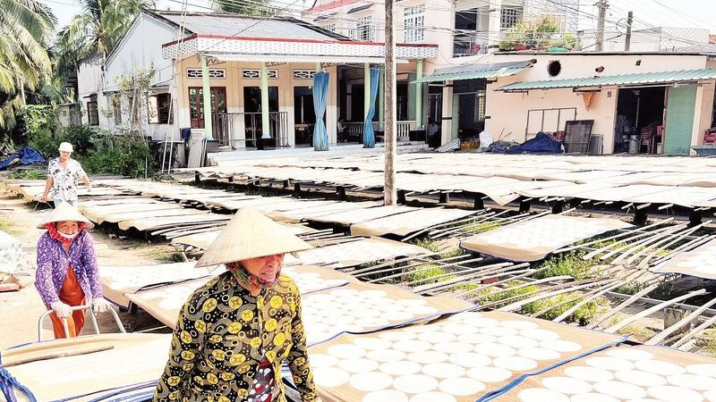 Không chỉ mang lại nguồn thu cho các hộ sản xuất, nghề làm bánh phồng còn giải quyết việc làm ổn định cho nhiều lao động địa phương. Cơ sở của anh Lâm hiện tạo việc làm cho bảy lao động với thu nhập từ 4,5-6 triệu đồng/người/tháng.