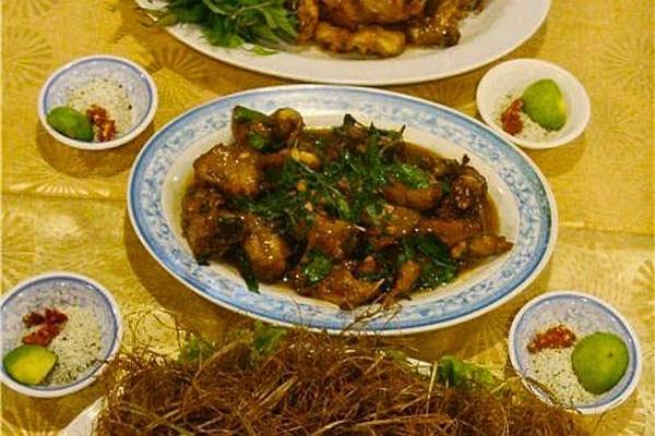 Ngoài món chuột nướng, chuột quay lu nức tiếng thì chuột dừa kho dừa cũng là món hấp dẫn thực khách. Những miếng chuột được tẩm ướp, chiên vàng rồi kho cùng nước dừa để vị ngọt thấm đều. Nước cạn lại tiếp tục châm thêm đến 2, 3 lần rồi mới bắc xuống, rắc thêm đậu phộng rang. Món này ăn kèm xà lách rau thơm, muối tiêu chanh. Nếu qua xứ Dừa, hãy nếm thử một lần những đặc sản thơm nức mũi này nhé
